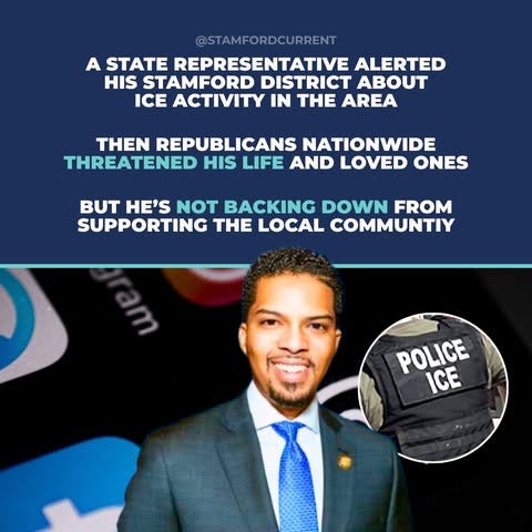 Then, to inform constituents in his Stamford district about ICE being active in the area on Friday, August 15, State Representative Corey Paris posted on social media.