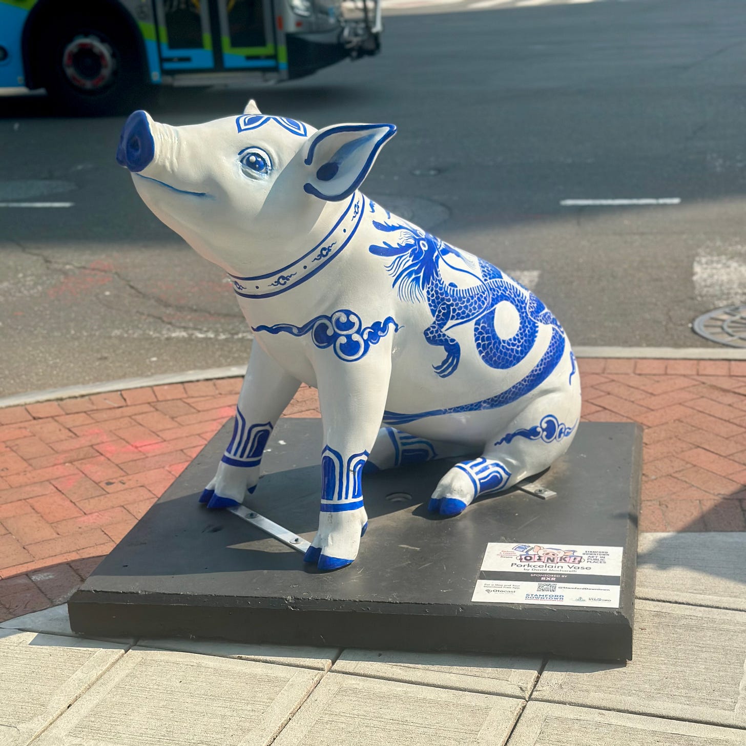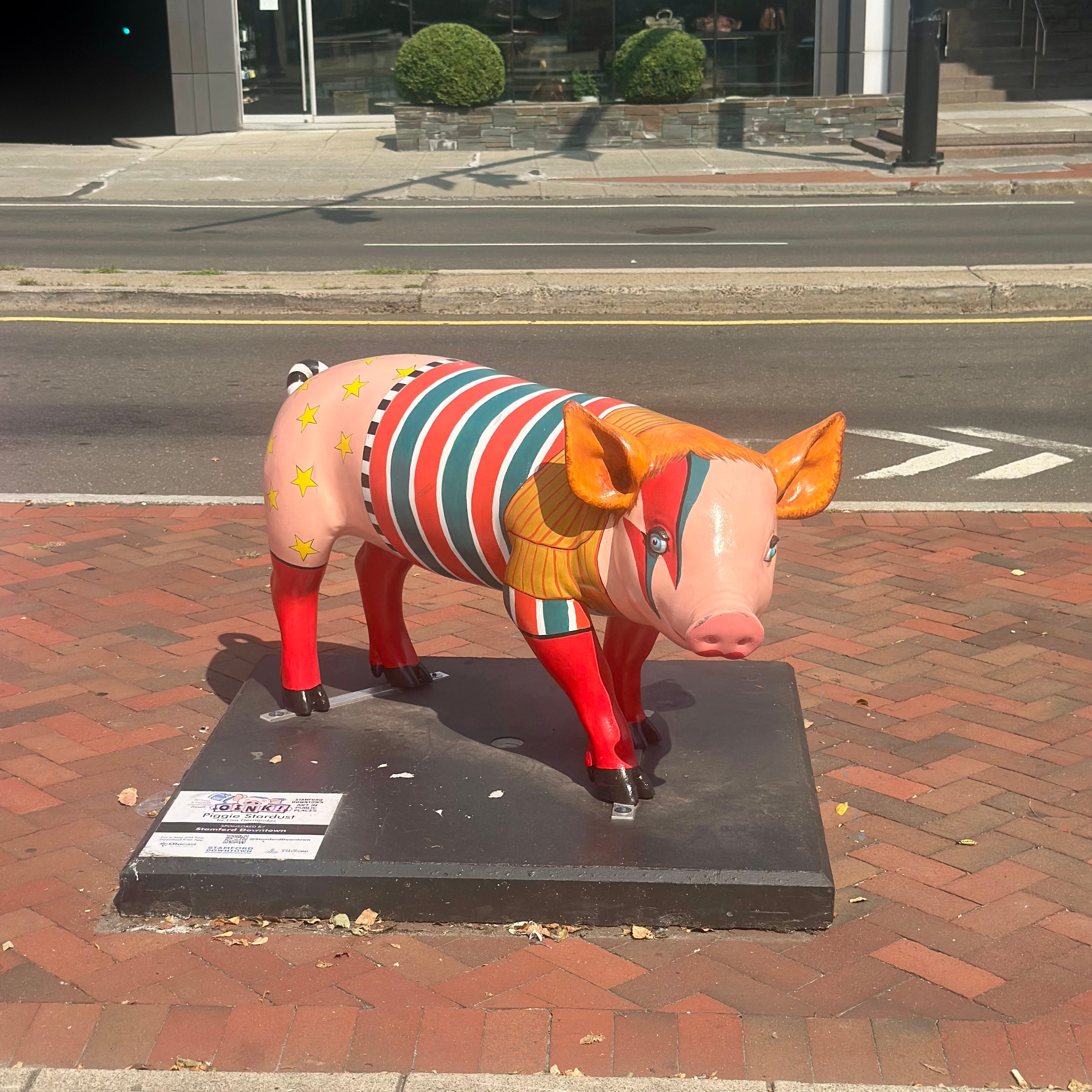 As part of the 2025 edition of the Art in Public Spaces event, Stamford Downtown decorated the downtown streets with the pigs featuring creative themes and clever pun-infused names.