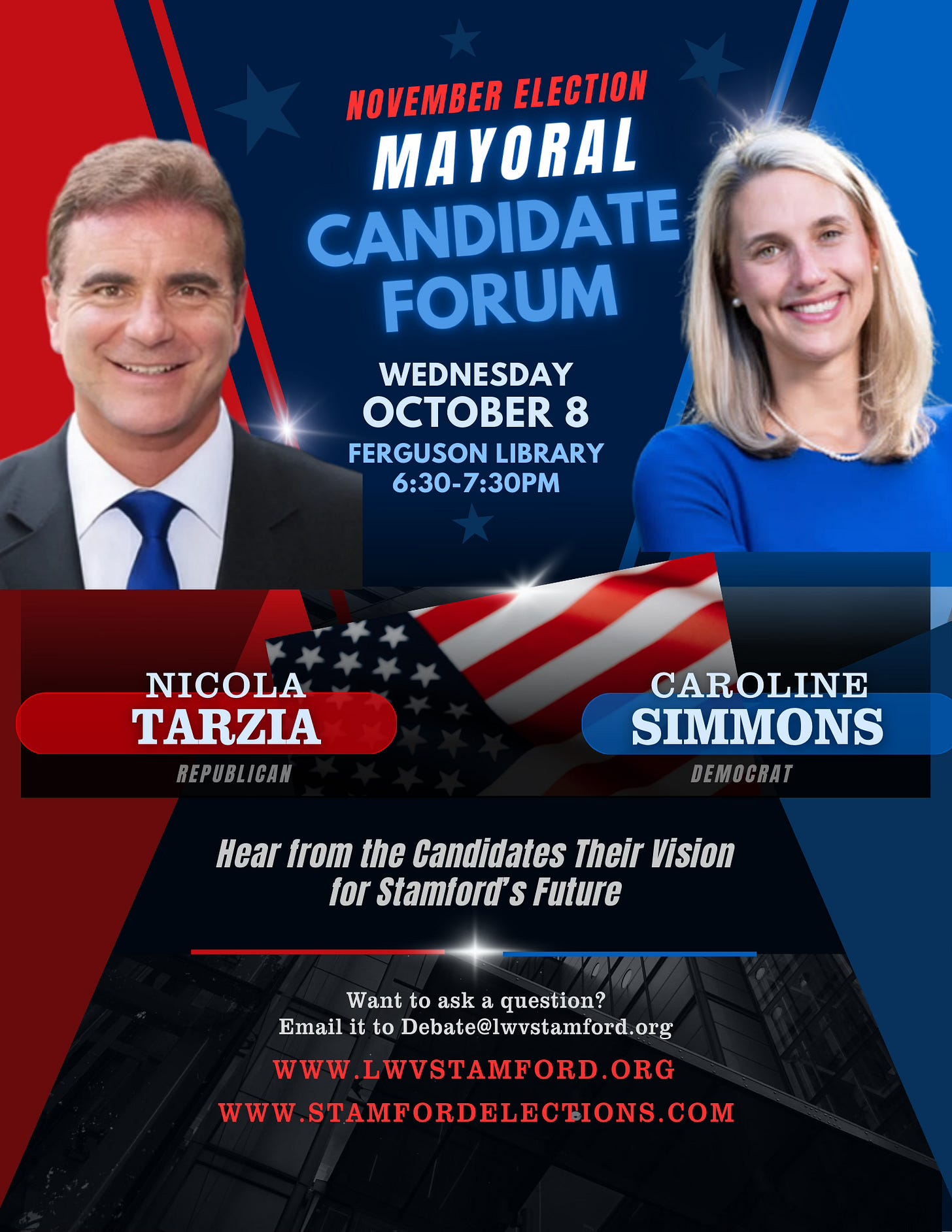 Anyone with questions for the candidates can contact the LWV Stamford chapter at debate@lwvstamford.org. More details can be found here.